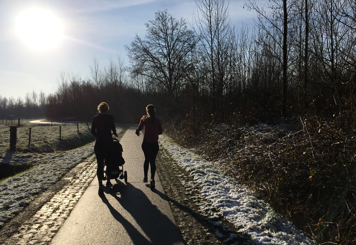 Samen sporten is tegenwoordig een fijner alternatief dan samen in een tuin te zitten koukleumen. In gezelschap lopen of fietsen heb ik daardoor nog meer naar waarde leren schatten. Een beetje eenzaamheid en kluizenaarschap is mij niet vreemd, maar mijn innerlijke mens haalt heel veel energie uit samen actief zijn. Er zijn mijn pauzeloopjes op school met collega’s Bart en Murielle, er zijn fietstochten met Rembert, er zijn de zussenloopjes en binnenkort ook een loopje met Elizabeth. Al lopend babbel je op een nog spontanere manier. Ik zou zelfs durven zeggen dat je al babbelend ook op een spontanere manier loopt.
