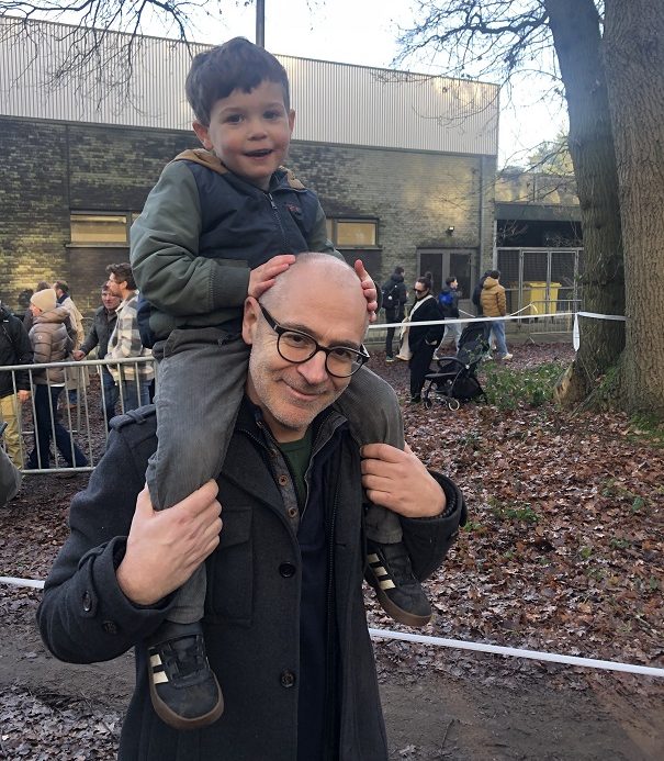 Ik keerde dus terug als supporter. Seppe zou namelijk bij zijn 13e deelname op zoek gaan naar een 11e titel. Hans kende De Hel alleen van de verhalen en wilde het spektakel ook wel eens live beleven, goed wetende dat daar een risico aan verbonden was: zin krijgen om zelf deel te nemen. Het parcours lag er razendsnel bij en dat betekende dat Seppe in een kopgroep van 4 om 11u al 70 km had gefietst. Met de familie verzamelden we in Het Bosje: een dennenbosje achter de sporthal wat door de verfrissende boslucht en de pittoreske dennenappels echt promotie is voor mountainbiken in de winter. De relatieve warmte was een veelbesproken onderwerp en natuurlijk ook Seppe zelf die als een jekko op een Orbea over het parcours raasde. Eveneens familietraditie langs de zijlijn dat is de uitgebreide bevoorrading van Marike. Denk aan een buffet in camionette-stijl: belegde pistolets, platgedrukte, maar wel heel lekkere croissants, zelfgebakken wafels en koekjes. De eigen energie op peil houden is net zo belangrijk om als supporter het beste van jezelf te kunnen geven.