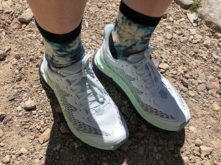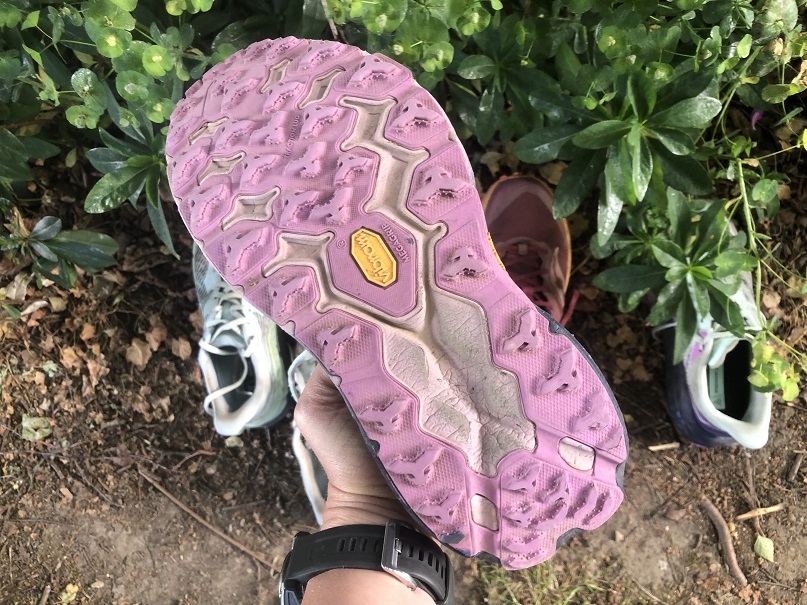 De Mafate Speed 4 van Hoka is mijn nieuwste aanwinst en kocht ik met het oog op het echt lange ultrawerk dat er zit aan te komen. Ik was al lichtjes beïnvloed door de complimentenregen van Hans over deze schoen. Voor een gewone bosloop met wat hoogte moet je niet meteen investeren in de Mafate. Het is op alle vlakken immers de meest geavanceerde trailschoen uit de Hoka-stal. Aan de pasvorm merk je meteen dat het een schoen is waar je een huis op kan bouwen. De zool is opgebouwd uit een zachtere foam om voldoende demping en dus comfort te geven, aangevuld met een wat hardere basis zodat de schoen ook stabiel blijft als je er uren aan een stuk mee loopt. Voor het technische werk (denk: steile klimmetjes en afdalingen over een geaccidenteerd terrein) is de Mafate je allerbeste vriend. Na mijn eerste trailtje ermee, kroonde ik mezelf meteen tot trailgodin Maffie. Een schot in de roos dus!