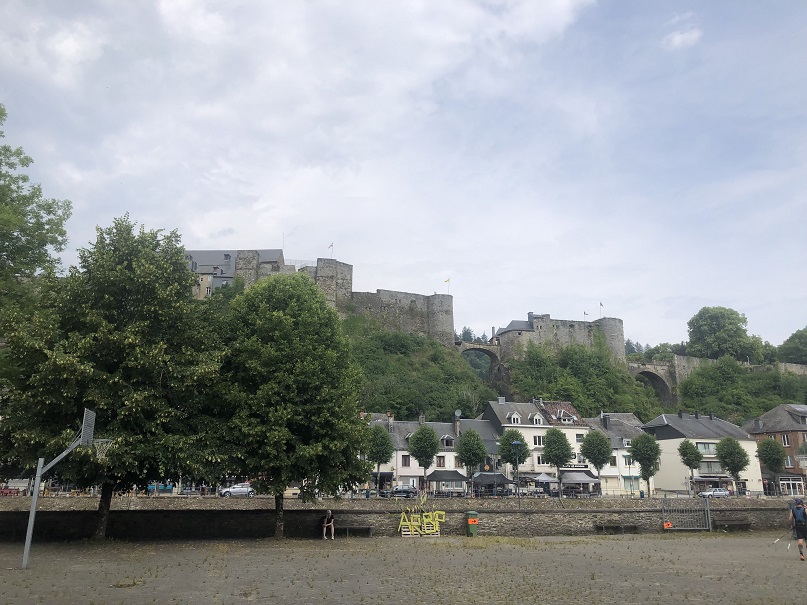 Voor nu wil ik jullie deze niet geheel vrijblijvende boodschap meegeven: ga alsjeblieft eens naar Bouillon! Het is een prachtige stad die tal van troefkaarten op tafel kan leggen. Om te beginnen ligt het in een lusvormige bocht van de Semois. Steden met een stevige rivier hebben altijd een streepje voor. Bovendien is de Semois buiten de stad een rivier zoals je die uit de boekjes kent. Ik zeg hier en nu gewoon: de Semois is voor de Ardennen wat de Nijl voor Egypte is. Denk hierbij nog wat loofbossen en wandelpaden langs de oevers en je bent mee in de idylle. Eveneens aanwezig in Bouillon: een middeleeuwse burcht, meer bepaald die van onze vriend Godfried. Burchten en kastelen zijn altijd goed voor wat extra drama en heroïek. Een vermelding waard is ook de Eglise des Saints Pierre et Paul, een kerk met kathedraal-allures. In Bouillon en omgeving liggen de uitzichten voor het rapen. Het is een prachtig stukje België in Franse sferen. Een stukje buitenland in eigen land. Ik had me geen mooier decor voor dit avontuur kunnen wensen. Bouillon heeft mijn hart veroverd!
