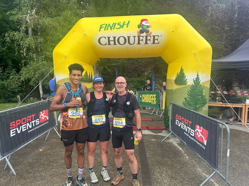 De conclusie De Chouffe trail blijft een prachtige wedstrijd en ik denk dat ik er nooit echt helemaal klaar mee zal zijn. Ik laat me ook in de toekomst graag verrassen door wat de omgeving en het parcours te bieden hebben. Het is telkens een heel blij weerzien met de familie Van den Borre en hun aanhang. Ook Sam weet inmiddels heel wat schoon loopvolk mee te krijgen en zo blijft onze trailfamilie groeien. Een groot voordeel dit jaar was dat er relatief weinig overlap was met lopers van kortere afstanden. Het eerste deel liepen we nog deels met de lopers van de 56 km, maar vanaf dan hadden we vrije baan. Lopen en trailrunning zijn nog steeds razend populair zijn, dat zie je aan de sterkte van het deelnemersveld. Twee jaar geleden liep ik nog naar de tweede plek in Houffalize. Dit jaar belandden we met z’n drieën net in de top 100 en lieten we nauwelijks 20 lopers achter ons. Ik werd 10e vrouw en in die top 10 staat slechts één andere Belgische vrouw. Trailrunning in België, het brengt iets teweeg. Ik hou de woorden van Roos in gedachten: wij waren de bakermat.